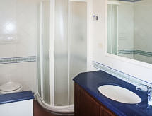 "Marzia", villa 5 locali 240 m2, al pianterreno. Spazioso, arredamento confortevole e di buon gusto: soggiorno/sala da pranzo grande, aperto con TV (satellite) (schermo piatto), DVD. Cucina (4 punti cottura, forno, lavastoviglie, forno a microonde). Piano inferiore: soggiorno/camera aperto grande con 2 letti e 1 divano letto doppio. Angolo cottura (4 punti cottura, forno). Doccia/bidè/WC. Piano superiore: 1 camera matrimoniale con bagno/doccia/WC e climatizzazione. Uscita sul balcone. 1 camera matrimoniale con climatizzazione. Uscita sul balcone. 1 camera con 2 letti e climatizzazione. Doccia/bidè/WC. A disposizione: asciugacapelli. Letti fatti all'arrivo.- Le caratteristiche dell'alloggio