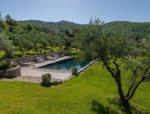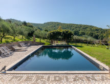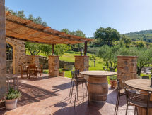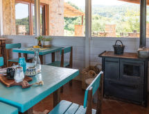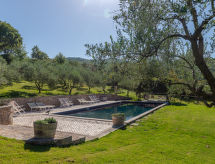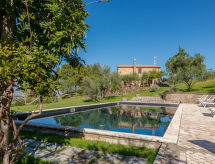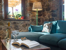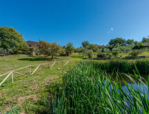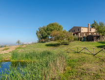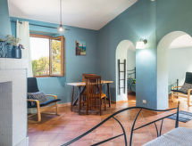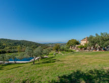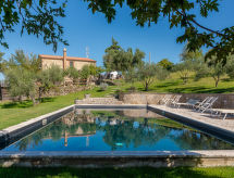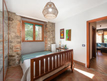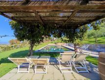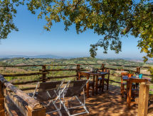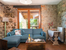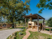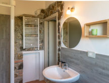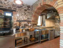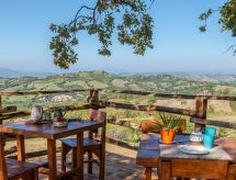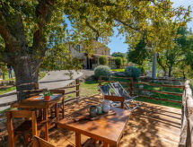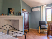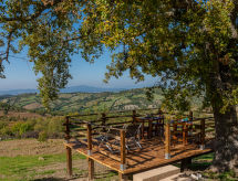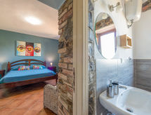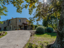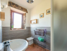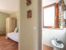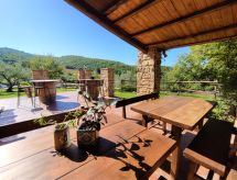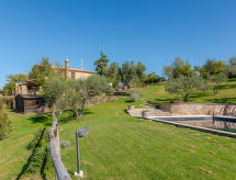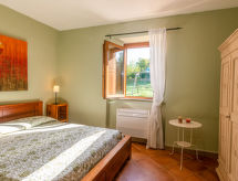 Casa 6 locali 260 m2 su 2 piani. Arredamento gradevole e di buon gusto: soggiorno con camino e TV. Sala da pranzo con tavolo da pranzo. Uscita sulla veranda. 1 camera matrimoniale. Cucina aperta (forno, lavastoviglie, 2 piastre ad induzione, tostapane, bollitore elettrico, forno a microonde, congelatore, macchina da caffè elettrica). Uscita sul giardino, sulla veranda. Doccia/bidè/WC. Riscaldamento elettrico. Piano superiore: (scala esterna) 1 camera con 2 letti, 1 letto doppio e camino (solo con funzione decorativa), doccia/bide/WC, TV, climatizzazione e riscaldamento di aria calda. Uscita sul giardino. 1 camera matrimoniale con doccia/bide/WC, TV, climatizzazione e riscaldamento di aria calda. 2 camere matrimoniali, ogni camera con doccia/bide/WC, climatizzazione e riscaldamento di aria calda. Arredamento confortevole in stile country. Grande terrazza in parte coperta, posto a sedere all’aperto. Mobili da terrazza, barbecue, sedie a sdraio, veranda in vetrata. Magnifica vista panoramica sul paesaggio. A disposizione: lavatrice, asciugacapelli, legna (extra). Internet (wifi, gratis). Prego notare: una camera doppia è esterna all'abitazione. Appartamento per non fumatori. Ingresso privato. Nessun collegamento interno tra i piani. Il casale dispone di una comoda veranda chiusa con vetrate dotata di stufa a legna, perfetta anche per i periodi piú freddi. Connessione wi-fi garantita nella zona giorno al piano inferiore. Su richiesta (extra) il proprietario organizza cene tipiche, escursioni, laboratori di cucina.- Strutture