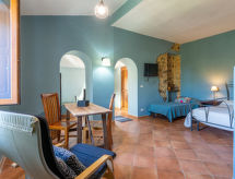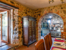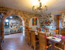Casa "Meridiana", molto piacevole, accogliente su 2 piani, indipendente, circondata da prati e vigne. A 4 km dal centro di Cana, a 16 km dal centro di Roccalbegna, posizione soleggiata su una collina, a 44 km dal mare, immerso nel verde. Per uso privato: terreno 2'000 m2, bello, curato giardino terrazzato (non recintato) con prato e alberi, piccolo stagno naturale, piscina (14 x 7 m, profondità 80 - 210 cm, disponibilità stagionale: 15.Apr. - 15.Ott.). Doccia esterna, pergola, pulizia piscina da parte del proprietario/giardiniere. Nella casa: lavatrice. Pulizia dell'appartamento su richiesta (extra). Parcheggio nella proprietà. Negozio alimentare 5 km, supermercato 25 km, shopping center 32 km, ristorante 5 km, bar 5 km, panetteria 5 km, spiaggia sabbiosa "Marina di Grosseto" 44 km, piscina termale "Saturnia" 34 km. Attrazioni nelle vicinanze: Grosseto 29 km, Campagnatico 23 km, Scansano 26 km, Monte Amiata 40 km, Pitigliano 47 km. Sentieri escursionistici: Riserva Naturale Pescinello 18 km, Riserva Naturale Bosco dei Rocconi 15 km, Parco Naturale della Maremma 43 km. Prego notare: auto consigliata. Vendita di prodotti agricoli locali.Interior