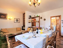 "Michelangelo", casa 4 locali 100 m2 al 1. piano. Spazioso e luminoso, arredamento semplice e confortevole: soggiorno/sala da pranzo con camino e TV (satellite) (schermo piatto), DVD. 1 camera matrimoniale con climatizzazione. Uscita sul balcone. 1 camera con 2 letti, lavabo, bide, WC separato e climatizzazione. Uscita sul balcone. 1 camera con 1 letto. Cucina (forno, lavastoviglie, forno a microonde, congelatore). Bagno/bidè/WC. A disposizione: lavatrice, ferro da stiro. Internet (wifi, gratis).- Strutture