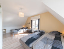 "Villa Mimosa", casa 3 locali 124 m2. Arredamento confortevole e di buon gusto: ingresso con WC separato. Soggiorno/sala da pranzo con angolo pranzo, tv digitale, CD e impianto stereo. Uscita sulla terrazza. Grande cucina aperta (forno, lavastoviglie, 4 piastre cottura in vetroceramica, tostapane, bollitore elettrico, forno a microonde, congelatore, macchina da caffè elettrica). Piano superiore: 1 camera matrimoniale mansardata con 1 letto doppio (180 cm, lunghezza 200 cm). 1 camera mansardata grande con 2 letti e 1 letto doppio (140 cm, lunghezza 200 cm). Bagno/doccia, lavabo doppio. Riscaldamento a gas. Terrazza 40 m2. Mobili da terrazza, barbecue. A disposizione: lavatrice, lettino per bimbi. Internet (wifi, gratis). Parcheggio vicino alla casa. Prego notare: casa per non fumatori.- Le caratteristiche dell'alloggio
