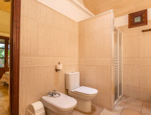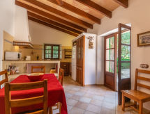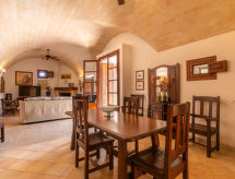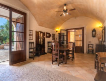 Finca "Moli de Son Vidal", grande, piacevole, circondato da campi. Unità composta da edificio principale e dependance, a 2 km dal centro di Santanyi, a 16 km dal centro di Campos, a 53 km dal centro di Palma, posizione tranquilla, soleggiata, a 6 km dal mare, immerso nel verde. Per uso privato: terreno allo stato naturale 17'000 m2 (recintato) con piante e alberi, giardino naturale, stagno, piscina (10 x 5 m, disponibilità stagionale: 01.Gen. - 31.Dic.) con filtro a elettrolisi. Doccia esterna, Tennis (1 x campo in terra battuta), patio, gazebo, pergola, mobili da giardino, barbecue, pulizia piscina da parte del proprietario/giardiniere. Nella casa: accesso ad internet, wifi, terrazza sul tetto, riscaldamento centrale. A disposizione: biciclette (4). Parcheggio nella proprietà. Colonna di ricarica per auto elettriche. Negozio 1.9 km, supermercato 2.3 km, ristorante 2.3 km, panetteria 2.5 km, spiaggia sabbiosa "Cala Santanyí" 6 km, spiaggia rocciosa "Cala Figuera" 7.2 km. Porto turistico 9.2 km, porto turistico 9.2 km, campo da golf 32 km. Attrazioni nelle vicinanze: Portopetro 9.2 km, Ses Salines - Colonia de Sant Jordi, Cala Llombard,Cala Figuera,Cala Mondragó 7.8 km, Playa d'Es Trenc 17 km, Palma City 50 km, Felanitx 13 km. Sentieri escursionistici: Puig de Sant Salvador 17.5 km, Castell de Santueri 15 km, Serra de Tramuntana 71 km. Prego notare: auto consigliata. Adatto alle famiglie. Oggetto adatto a 8 adulti. Il proprietario non accetta gruppi di giovani. Sul terreno allevamento di animali. Aeroporto 45 km dalla casa.Interior