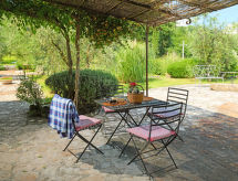 Casa 2 locali 100 m2. Restaurata, arredamento molto gradevole e elegante: soggiorno/sala da pranzo con camino, tavolo da pranzo e climatizzazione. Uscita sul giardino. 1 camera matrimoniale aperta con con vasca da bagno ad angolo. Uscita sulla loggia. Angolo cottura (forno, forno a microonde, congelatore, macchina da caffè elettrica). Doccia/bidè/WC, lavabo doppio. Riscaldamento a gas, climatizzazione (extra). Riscaldamento utilizzabile dal 01.11. al 15.04. Piano superiore: soppalco mansardato, aperto altezza del soffitto 80 - 180 cm con 1 letto doppio e TV (satellite) (schermo piatto). Pavimenti in legno. Posto a sedere all’aperto, giardino, gazebo. Mobili da terrazza, barbecue, sedie a sdraio, posto a sedere. Bella vista sul paesaggio. A disposizione: lavatrice, cassaforte, asciugacapelli. Internet (wifi, gratis). 1 animale/cane consentito. I gatti non sono ammessi in casa. Si prega di notare che il letto al piano superiore e’ un letto futon.- Strutture