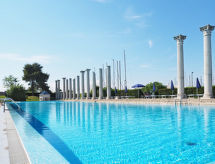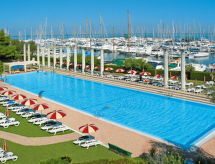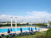 Complesso turistico "Olimpo", grande su 5 piani. 310 appartamenti nel residence. Nella frazione Sabbiadoro, a 500 m dal centro di Lignano-Sabbiadoro, a 13 km dal centro di Bibione, a 95 km dal centro di Trieste, a 250 m dal mare. In comune: piscina (47 x 12 m, disponibilità stagionale: 01.Giu. - 15.Set., extra). WC nell'area piscina, doccia esterna, Tennis (extra), terrazza. Nella casa: ascensore, noleggio biciclette. Parcheggio presso la casa nella proprietà, autorimessa presso la casa. Negozio, negozio alimentare, ristorante 500 m, stazione ferroviaria "Latisana (Milano-Venezia-Triest)" 20 km, spiaggia sabbiosa 250 m, piscina 700 m, stabilimento balneare 400 m. Porto turistico 10 m, campo da golf (18 buche) 8.5 km. Servizio spiaggia: da circa inizio maggio a circa metà settembre, 1 lettino, 1 sedia a sdraio e 1 ombrellone per unità abitativa sono inclusi nel prezzo di affitto.Interior