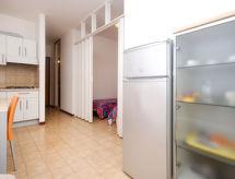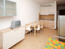 Monolocale 32 m2. Luminoso, arredamento funzionale: soggiorno/camera con 4 posti letto, tavolo da pranzo, angolo cucina e TV (satellite). Uscita sul balcone. Cucina aperta (fornello a gas, 4 fuochi, forno a microonde, macchina da caffè elettrica). Doccia/WC. Climatizzazione, riscaldamento ad aria calda. Balcone. Mobili da balcone. A disposizione: seggiolone, lettino per bimbi. Parcheggio (1 Auto) vicino alla casa.- Strutture