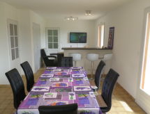 Casa singola "Petrocq", ristrutturata nel 2021, circondata da prati e campi. Nella frazione Petrocq, a 2.5 km dal centro di Lit-et-Mixe, a 7 km dal centro di Saint-Julien-en-Born, a 23 km dal centro di Mimizan, a 6.5 km dal mare, in una strada senza uscita. Per uso privato: terreno 4 ha, giardino 2'000 m2 (recintato) con prato e alberi, piscina riscaldata (9 x 4 m, profondità 130 cm, disponibilità stagionale: 12.Giu. - 23.Ott.) con copertura avvolgibile e filtro a elettrolisi. Terrazza (130 m2). Accesso (100 m strada non asfaltata). Parcheggio presso la casa nella proprietà. Negozio 2.5 km, supermercato 3.5 km, spiaggia sabbiosa 6.5 km. Campo da golf (18 buche) 30 km.Interior
