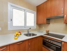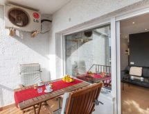 "Picasso", apt. di 2 locali 36 m2. Arredamento funzionale e accogliente: soggiorno/sala da pranzo con tavolo da pranzo, tv digitale, climatizzazione e riscaldamento di aria calda. Uscita sul balcone. 1 camera matrimoniale con 1 letto (150 cm, lunghezza 190 cm). Cucina (forno, lavastoviglie, 4 piastre cottura in vetroceramica, tostapane, bollitore elettrico, forno a microonde, congelatore, macchina da caffè elettrica). Bagno/bidè/WC. Mobili da terrazza. Vista sulla località. A disposizione: lavatrice, ferro da stiro, seggiolone, lettino per bimbi fino 2 anni, asciugacapelli. Internet (wifi, gratis). Prego notare: canali TV soltanto in ES. HUTG023660- Strutture