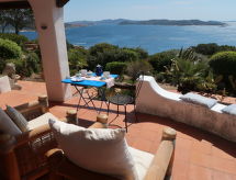 Casa 4 locali 120 m2, al pianterreno. Arredamento confortevole e accogliente: soggiorno con TV. Uscita sulla terrazza. 1 camera matrimoniale. 1 camera con 1 letto. 1 camera con 2 letti e doccia/bide/WC. Piccola cucina (4 punti cottura, forno, lavastoviglie, forno a microonde, congelatore) con tavolo da pranzo. Uscita sulla terrazza. Doccia/bidè/WC. Terrazza in parte coperta, giardino. Mobili da terrazza. Magnifica vista sul mare e sulla località. A disposizione: lavatrice, ferro da stiro, asciugacapelli. Prego notare: una camera doppia è esterna all'abitazione. Una camera con due letti e un doccia/bidet/ WC sono esterni all'abitazione.- Strutture