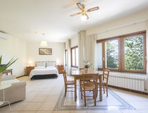 Monolocale 40 m2. Arredamento funzionale e gradevole: soggiorno/camera con 1 letto matrimoniale, TV (satellite) e climatizzazione. Angolo cottura (2 piastre ad induzione, tostapane, bollitore elettrico, forno a microonde, congelatore) con tavolo da pranzo. Doccia/bidè/WC. A disposizione: cassaforte, ferro da stiro, seggiolone, asciugacapelli. Internet (wifi, gratis).- Le caratteristiche dell'alloggio