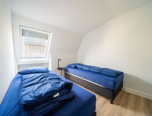 "Villa 12", villa 7 locali 130 m2 su 2 piani. Arredamento confortevole: ingresso con WC separato. Soggiorno/sala da pranzo con tavolo da pranzo e schermo piatto. Uscita sulla terrazza. 1 camera matrimoniale con 1 letto doppio e doccia. Cucina aperta (4 punti cottura, lavastoviglie, bollitore elettrico, macchina da caffè elettrica, capsule per la macchina da caffè (Nespresso) extra, microonde combinato). Riscaldamento a pavimento. Piano superiore: 4 camere matrimoniali, ogni camera con 2 letti. 1 camera matrimoniale con 1 x 2 letti a castello. 2 docce, WC separato. Riscaldamento. Terrazza. Mobili da terrazza. A disposizione: Internet (wifi, gratis). Parcheggio (2 Auto) vicino alla casa. Prego notare: casa per non fumatori. Allarme antifumo.- Strutture