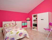 Villa 5 locali 160 m2 su 2 piani. Arredamento confortevole e di buon gusto: soggiorno/sala da pranzo con TV (schermo piatto). Uscita sulla veranda, sulla piscina. 2 camere matrimoniali, ogni camera con climatizzazione e riscaldamento di aria calda. Angolo cottura (4 punti cottura, forno, tostapane, bollitore elettrico, forno a microonde, congelatore). Doccia/bidè/WC. Piano superiore: (scala a chiocciola) 1 camera con 2 letti, climatizzazione e riscaldamento di aria calda. 1 camera con 1 letto, climatizzazione e riscaldamento di aria calda. Doccia/bidè/WC. Grande balcone 12 m2, grande posto a sedere all’aperto 20 m2, coperto. Mobili da terrazza, barbecue, sedie a sdraio. Vista sulla piscina e sulla località. A disposizione: lavatrice, ferro da stiro, seggiolone, lettino per bimbi fino 2 anni (extra), asciugacapelli. Internet (wifi, gratis). Parcheggio (3 Auto). Prego notare: casa per non fumatori. Massimo 1 animale/cane consentito.- Strutture