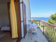 Apt. di 4 locali 100 m2 al 2. piano, esposizione sud. Soggiorno/sala da pranzo 25 m2 con TV (satellite) (schermo piatto). Uscita sulla terrazza. Ingresso con climatizzazione. 1 camera con 1 letto (90 cm, lunghezza 190 cm), 1 letto matrimoniale (160 cm, lunghezza 200 cm). Uscita sulla terrazza. 1 camera con 2 letti (90 cm, lunghezza 200 cm). 1 camera con 1 letto (90 cm, lunghezza 190 cm), 1 letto doppio (2 x 90 cm, lunghezza 190 cm). Uscita sulla terrazza. Cucina aperta (4 punti cottura, forno, bollitore elettrico, forno a microonde, congelatore, macchina da caffè elettrica). Bagno/WC, doccia/WC. Terrazza 12 m2, terrazza 6 m2. Mobili da terrazza. Vista sul mare. A disposizione: lavatrice, ferro da stiro, asciugacapelli. Internet (wifi, gratis). 1 animale/cane consentito.- Le caratteristiche dell'alloggio