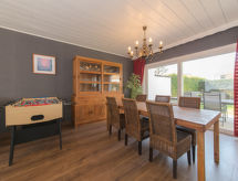 "Ruiterlaan", metà di una villetta bifamiliare 4 locali 100 m2 su 2 piani. Spazioso, arredamento confortevole: ingresso con WC separato. Soggiorno/sala da pranzo aperto con tavolo da pranzo, TV, tv digitale, tv con canali internazionali e DVD. Cucina aperta (4 punti cottura, forno, lavastoviglie, tostapane, bollitore elettrico, forno a microonde, congelatore, macchina da caffè elettrica). Piano superiore: 1 camera con 1 x 2 letti a castello (90 cm, lunghezza 200 cm), 1 letto doppio (140 cm, lunghezza 200 cm). Uscita sul balcone. 1 camera con 1 letto doppio (180 cm, lunghezza 200 cm), TV, tv digitale e tv con canali internazionali. 1 camera con 1 divano letto doppio (1 x 140 cm, lunghezza 200 cm). Doccia/WC. Piccolo balcone 5 m2, terrazza 15 m2, esposizione sud-ovest, giardino 50 m2, esposizione sud-ovest. Mobili da terrazza, mobili da balcone, barbecue. A disposizione: lavatrice, asciugatrice, seggiolone, lettino per bimbi fino 2 anni, asciugacapelli. Internet (wifi, gratis). Parcheggio (recintato, 1 Auto). Prego notare: casa per non fumatori. 1 animale/cane di piccola taglia consentito. Allarme antifumo, estintore. La disposizione dei letti è flessibile. Sono disponibili più posti letto rispetto al numero massimo di persone consentito che, tuttavia, non può essere superato.- Strutture