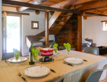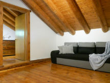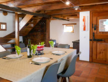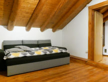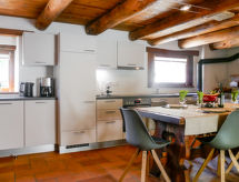 "Rustico Gianni", casa 3 locali 90 m2. In parte restaurata nel 2021, arredamento confortevole e accogliente: soggiorno/sala da pranzo aperto con camino, tv digitale e radio. Uscita sulla terrazza. Cucina aperta (forno, lavastoviglie, 4 piastre cottura in vetroceramica, tostapane, bollitore elettrico, macchina da caffè elettrica, capsule per la macchina da caffè (Dolce gusto), set per raclette, set per fondue (formaggio)) con stufa a legna. Uscita sulla loggia. Doccia/WC. Riscaldamento a legna. Piano superiore: soggiorno. 1 camera matrimoniale mansardata con 1 letto doppio (1 x 160 cm, lunghezza 200 cm). 1 camera mansardata con 2 letti (90 cm, lunghezza 200 cm). Uscita sul giardino. Balcone, grande terrazza. Mobili da terrazza, mobili da balcone, barbecue (portatile), sedie a sdraio (4). Splendida vista sulle montagne e sul bosco. A disposizione: lettino per bimbi fino 2 anni, asciugacapelli. Internet (wifi). Prego notare: appartamento per non fumatori. Massimo 1 animale/cane consentito. Estintore. NL-00003007- Strutture