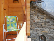 "Rustico Nurell", casa 2 locali 40 m2 su 2 piani, esposizione sud. Oggetto adatto a 2 adulti. Luminoso, in parte mansardata, arredamento rustico e accogliente: sala da pranzo aperta con TV (satellite), schermo piatto, radio e stufa a legna. Cucina aperta (4 punti cottura, forno). Doccia/WC. Piano superiore: (scala senza ringhiera) 1 camera matrimoniale mansardata con 1 letto doppio (2 x 80 cm, lunghezza 190 cm). Uscita sul balcone. Mobili da balcone. Prego notare: casa per non fumatori. Estintore. NL-00002329- Strutture