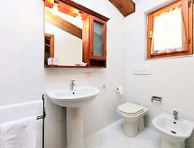 "Simone", apt. di 2 locali 35 m2, al pianterreno. Arredamento funzionale e accogliente: soggiorno/sala da pranzo con TV (satellite). Uscita sul giardino. 1 camera matrimoniale. Angolo cottura (4 punti cottura, forno, bollitore elettrico, congelatore). Doccia/bidè/WC. Piccolo giardino. Mobili da terrazza. Prego notare: 1 animale/cane consentito. Per accedere dal soggiorno all'angolo cottura, come dalla camera al bagno, ci sono tre gradini.- Strutture