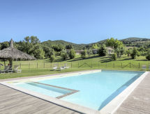 "Sorbo", apt. di 3 locali 65 m2 al 1. piano. Arredamento funzionale: soggiorno/sala da pranzo con tavolo da pranzo e TV (satellite). 1 camera con 1 letto doppio (160 cm). 1 camera con 2 letti (80 cm). Cucina aperta (4 punti cottura, forno, bollitore elettrico, macchina da caffè elettrica). Doccia/WC. Riscaldamento. Piccolo posto a sedere all’aperto. Mobili da terrazza. A disposizione: zanzariere, lettino per bimbi. Internet (wifi, gratis). Prego notare: appartamento per non fumatori. Massimo 1 animale/cane consentito. Ingresso privato. L'appartamento si trova nella dependance 'Casa dell Guardie', a circa 1 km dalla tenuta con piscina, prato, campo da tennis, campo da basket e ping-pong.- Strutture