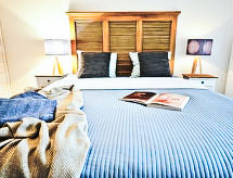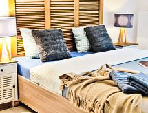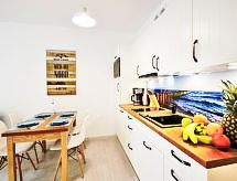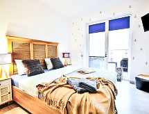 "A201", apt. di 2 locali 50 m2 al 2. piano. Soggiorno/sala da pranzo con 2 divani letto, TV (satellite) e radio. Uscita sul balcone. 1 camera con 1 letto doppio. Cucina aperta (lavastoviglie, 2 piastre cottura in vetroceramica, forno a microonde, congelatore). Doccia/WC. Riscaldamento a gas. Balcone 4 m2. Mobili da balcone, sedie a sdraio (2). A disposizione: lavatrice, ferro da stiro, asciugacapelli. Internet (wifi). 1 animale/cane consentito.- Strutture