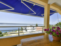 "Tanja (SRD404)", apt. di 5 locali 130 m2 al 3. piano. Soggiorno/sala da pranzo con TV (satellite) e climatizzazione. Uscita sul balcone. 1 camera con 1 letto matrimoniale (160 cm, lunghezza 200 cm). Uscita sul balcone. 1 camera con 2 letti e doccia/WC. Uscita sul balcone. 1 camera con 2 letti. Uscita sul balcone. 1 camera con 1 letto matrimoniale (160 cm, lunghezza 200 cm), doccia/WC. Cucina aperta (forno, lavastoviglie, 2 piastre cottura in vetroceramica, 2 fuochi, tostapane, bollitore elettrico, macchina da caffè elettrica). Doccia/WC. 3 balconi 6 m2, balcone 25 m2. Mobili da balcone, barbecue. Vista sul mare. A disposizione: lavatrice. Internet (wifi, gratis). Prego notare: appartamento per non fumatori.- Strutture