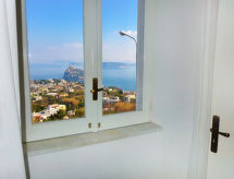 "The Pink", casa 3 locali 140 m2 su 3 piani. Spazioso e luminoso, completamente restaurata nel 2018, arredamento confortevole e accogliente: 1 camera con abbaino con 2 letti. Grande cucina (4 punti cottura, forno, lavastoviglie, forno a microonde, congelatore) con tavolo da pranzo, TV (via cavo). WC separato. Piano superiore: 1 camera matrimoniale con finestra panoramica con bagno/bide/WC. Uscita sul balcone. 2. piano superiore: soggiorno/sala da pranzo con camino. Uscita sul balcone. Doccia/bidè/WC. 2 piccoli balconi. Mobili da balcone. Magnifica vista panoramica sul mare, sulla località e Castello Aragonese e Procida. A disposizione: lavatrice, ferro da stiro, asciugacapelli. Internet (wifi, gratis). Prego notare: adatto alle famiglie. Casa per non fumatori. No ascensore.- Le caratteristiche dell'alloggio