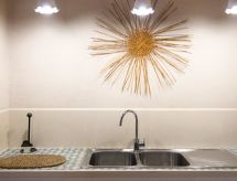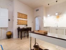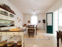 Torre Suda: Insediamento turistico "Tia", piccolo. 5 appartamenti nel residence. A 1.5 km dal centro di Racale, a 3 km dal mare, a 3 km dalla spiaggia. In comune: giardino 2'000 m2 con piante e alberi, piscina (18 x 7 m, profondità 200 - 90 cm di profondità, disponibilità stagionale: 01.Apr. - 31.Ott.). Doccia esterna, pulizia piscina da parte del proprietario/giardiniere. Nella casa: solarium. Cambio biancheria (ulteriori extra). Cambio asciugamani (ulteriori extra). Pulizia dell'appartamento su richiesta (extra). Parcheggio nella proprietà. Negozio 1.5 km, negozio alimentare 1.5 km, supermercato 1.8 km, bar 1.5 km, stazione ferroviaria "Racale - Alliste" 2.5 km, spiaggia sabbiosa "Mancaversa" 5 km, spiaggia rocciosa "Torre Suda" 3 km. Attrazioni nelle vicinanze: Spiaggia di Punta Pizzo 9 km, Gallipoli 17 km, Torre San Giovanni 10 km, Lecce, Otranto 55 km, Castro 35 km, Aeroporto del Salento (BDS) 100 km. Prego notare: auto consigliata.Interior