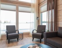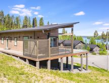 65 km a nord-est di Kuopio, Lago Syväri 150 m, spiaggia comune, poco profondo, fondo di sabbia dura a 2 km, nessuna barca. Villa in legno a due piani costruita nel 2020. Al piano principale soggiorno / cucina, camera da letto 2 letti, camera da letto divano letto matrimoniale, soppalco mansardato (punto più alto 1,5 m) 2 letti, bagno con doccia (1 doccia e WC) , WC separato, sauna (fornello elettrico), grande terrazza (90 mq). Posto auto coperto e ripostiglio al piano di sotto. La villa dispone di una pompa di calore ad aria a circolazione d'acqua e il camino è un caminetto senza serbatoio. Nuova villa elegante con una splendida vista sul lago Syvärijärvi. Posizione in una tranquilla zona di cottage, ma tutti i servizi sono quasi raggiungibili a piedi: negozio 800 m, ristorante 800 m, Piazza e l'hotel Tahkovuori 1 km, Tahko Spa 900 m, skilift più vicino 1 km, campo da golf 1 km (Old Course) e 8 km (New Course). Parco eventi Tahko 800 m. Le prenotazioni iniziano il giorno di arrivo alle ore 16.00 e terminano il giorno di partenza alle ore 12.00 (vale anche per le prenotazioni del fine settimana).- Strutture