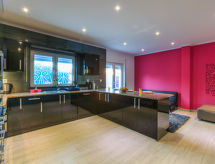 "Villa Kambu", casa 6 locali 227 m2 su 2 piani. Arredamento gradevole e di buon gusto: soggiorno/sala da pranzo con camino (solo con funzione decorativa), tavolo da pranzo e TV (satellite) (schermo piatto), impianto stereo, DVD e climatizzazione. Uscita sulla terrazza. Sala biliardo grande con TV e climatizzazione. Uscita sulla terrazza. 1 camera con 1 letto matrimoniale (160 cm, lunghezza 200 cm), bagno/WC e TV (schermo piatto), climatizzazione. Uscita sulla terrazza. 1 camera con 2 letti (90 cm, lunghezza 190 cm), TV (schermo piatto), climatizzazione. Uscita sulla terrazza. 1 camera con 2 letti (90 cm, lunghezza 190 cm), TV (schermo piatto), climatizzazione. Cucina (forno, lavastoviglie, 4 piastre cottura in vetroceramica, tostapane, bollitore elettrico, forno a microonde, congelatore, macchina da caffè elettrica). Uscita sulla terrazza. Bagno/WC, doccia/WC. Climatizzazione. Piano superiore: 1 camera con 1 letto matrimoniale (160 cm, lunghezza 200 cm), bagno/WC, lavabo doppio, con vasca da bagno ad angolo e TV (schermo piatto), climatizzazione. Balcone, terrazza in parte coperta terrazza. Mobili da terrazza, barbecue, sedie a sdraio (8). A disposizione: lavatrice, cassaforte, seggiolone, lettino per bimbi. Internet (wifi, gratis). Prego notare: appartamento per non fumatori. Allarme antifumo, estintore. 4527/AL- Le caratteristiche dell'alloggio