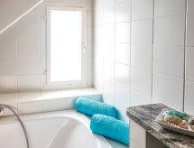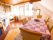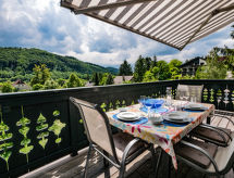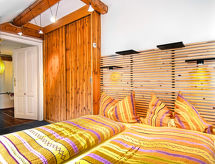 "Villa Marie", apt. di 2 locali 110 m2, al piano sottotetto. Spazioso, mansardato, arredamento di buon gusto e con molto legno: ingresso. Soggiorno grande con 1 divano letto (160 cm, lunghezza 200 cm), TV (via cavo), tv con canali internazionali, schermo piatto, radio, CD, DVD e raccolta di dvd a disposizione. Uscita sulla terrazza. 1 camera matrimoniale con abbaino. Grande cucina (forno, lavastoviglie, 4 piastre cottura in vetroceramica, macchina da caffè elettrica, capsule per la macchina da caffè (Martello) extra) con tavolo da pranzo. Uscita sulla terrazza. Bagno/doccia, WC separato. Pavimenti in legno. 2 terrazze 14 m2, terrazza 10 m2. Mobili da terrazza, sedie a sdraio (2). Splendida vista sul paesaggio. A disposizione: lavatrice, ferro da stiro, asciugacapelli. Internet (wifi, gratis). Computer (gratuito). Prego notare: non adatto a bambini al di sotto dei 15 anni. Appartamento per non fumatori. Allarme antifumo.- Le caratteristiche dell'alloggio