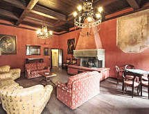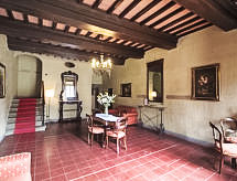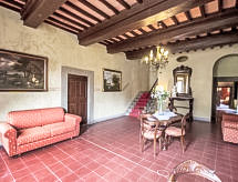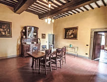 Antica Villa di epoca medicea al centro di una tipica fattoria toscana. Villa "Marisel", d'epoca. A 3 km dal centro di Vicchio di Mugello, a 8 km dal centro di Borgo San Lorenzo, a 35 km dal centro di Firenze, a 26 km dal lago. In comune: giardino (non recintato) con fiori. Tennis (1 x campo veloce). Per uso privato: giardino 400 m2 (recintato) con prato, piscina (10 x 5 m, profondità 150 cm, disponibilità stagionale: 01.Mag. - 30.Set.). Mobili da giardino, barbecue. Nella casa: reception, biliardo, riscaldamento utilizzabile dal 01.11. al 08.04.. Parcheggio presso la casa a 100 m. Negozio 3 km, negozio alimentare 3 km, supermercato 3 km, lago balneabile "Lago di Bilancino" 26 km. Campo da golf 19 km, maneggio 6 km. Attrazioni nelle vicinanze: Barberino del Mugello 28 km, Outlet Barberino del Mugello 30 km, Scarperia 23 km. In comune con gli appartamenti della fattoria si trova il campo da tennis. Al piano seminterrato, ingresso separato ed indipendente, c'è una sala riunioni. Una vecchia linea ferroviaria locale passa nelle vicinanze della proprietà.Interior