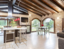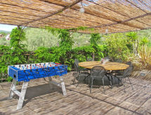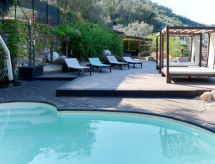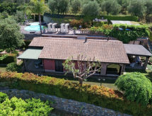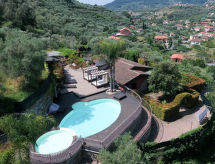 "Villa Monterosso (IMP420)", casa 6 locali 225 m2 su 2 piani. Oggetto adatto a 8 adulti + 2 bambini. Spazioso e luminoso, arredamento molto confortevole e di buon gusto: soggiorno/sala da pranzo grande, aperto con porta scorrevole, finestra panoramica con tavolo da pranzo, TV (satellite), impianto stereo e DVD. Uscita sulla terrazza. 1 camera con 1 letto matrimoniale (160 cm). Uscita sul giardino. 1 camera per bambini con 2 letti. Cucina aperta (forno, lavastoviglie, 5 fuochi, tostapane, forno a microonde, congelatore, macchina da caffè elettrica) con bancone. Bagno/doccia/WC, lavabo doppio. Piano inferiore: (scala esterna) soggiorno/camera con 1 divano letto doppio, camino e TV (satellite). Camera di passaggio con 1 letto matrimoniale (160 cm). Uscita sul giardino. 1 camera aperta piccola, senza finestra con 1 x 2 letti a castello (70 cm). 1 camera con 1 letto matrimoniale (160 cm). Uscita sul giardino. Cucina aperta (forno, lavastoviglie, 4 fuochi, congelatore, macchina da caffè elettrica, forno per pizza). Doccia/WC, lavabo doppio. Riscaldamento a gas, climatizzazione. 2 grandi terrazze coperta. Mobili da terrazza, barbecue, sedie a sdraio. Magnifica vista panoramica sulla valle, sul paesaggio e sulla località. A disposizione: lavatrice, asciugatrice, seggiolone, lettino per bimbi. Internet (wifi, gratis). Nessun collegamento interno tra le unità indipendenti. Una delle camere da letto è senza aria condizionata. Occupazione massima: 8 adulti, 2 bambini (fino a 18 anni) e 2 neonati (fino a 2 anni). CITRA: 008031-LT-0683- Strutture