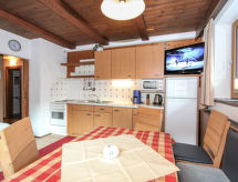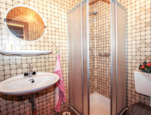 Apt. di 2 locali 60 m2. Luminoso, arredamento accogliente: 1 camera con 2 letti doppi. Cucina abitabile (4 punti cottura, forno, forno a microonde, congelatore) con tavolo da pranzo, 1 letto doppio (200 cm, lunghezza 200 cm), TV (satellite) (schermo piatto). Uscita sul giardino. 2 doccia/WC. Terrazza, posto a sedere all’aperto. Mobili da terrazza, barbecue, sedie a sdraio. Bella vista sulle montagne e sul paesaggio. A disposizione: lettino per bimbi fino 2 anni, asciugacapelli. Prego notare: adatto alle famiglie. Appartamento per non fumatori. Ingresso privato. Nota: una doccia / WC si trova all'esterno dell'appartamento (stesso piano). L'appartamento ha un meraviglioso giardino.- Strutture