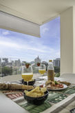 Apt. di 3 locali 50 m2. Arredamento moderno: soggiorno/camera con 1 divano letto doppio, tavolo da pranzo e TV (satellite). Uscita sul balcone. 1 camera matrimoniale con doccia/bide/WC. 1 camera con 1 letto e 1 letto ad armadio. Angolo cottura (lavastoviglie, 4 piastre ad induzione, forno a microonde, macchina da caffè elettrica). Doccia/bidè/WC. Climatizzazione, riscaldamento ad aria calda. Balcone. Mobili da balcone. A disposizione: cassaforte, lettino per bimbi fino 2 anni (extra), asciugacapelli. Internet (wifi, gratis). Parcheggio (1 Auto).- Strutture