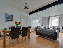 Huis 5-kamers op 3 verdiepingen. Ruim en licht, comfortabel en smaakvol ingericht: open woonkamer met TV, Flatscreen TV en DVD. Eetkamer met eettafel. Open keuken (4-pits kookplaat, oven, afwasmachine, magnetron, diepvriezer). Bovenverdieping: 1 2-pers. kamer met 1 2-pers bed. 1 kamer met 2 bedden. 1 kamer met 1 x 2 stapelbedden. Bad/douche/WC. Verwarming. 2e Verdieping: 1 2-pers. kamer met 1 2-pers bed. Douche/WC. Verwarming. Terrasmeubelen. Mooi uitzicht op zee. Ter beschikking: wasmachine, droger. Internet (Internet (WiFi), gratis). Let op: rookvrij huis.- Uitrusting
