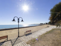 Huis 7-kamers 220 m2 op 2 verdiepingen. Doelmatig en comfortabel ingericht: woon-/eetkamer met Digitale TV en Flatscreen TV. Uitgang naar het terras. 1 kamer met 1 2-pers bed (135 cm, lengte 190 cm). 1 kamer met 2 bedden (90 cm, lengte 190 cm). 1 kamer met 1 bed (90 cm, lengte 190 cm). Open keuken (4-pits kookplaat, oven, afwasmachine, broodrooster, magnetron, elektrische koffiemachine) met bar. Bad/WC. Geen stookmogelijkheid. Bovenverdieping: 1 kamer met 1 2-pers bed (135 cm, lengte 190 cm). 1 kamer met 2 bedden (90 cm, lengte 190 cm). 1 kamer met 1 uitschuifbaar bed (2 pers. 2 x 90 cm, lengte 190 cm). Douche/WC. Zithoek in de tuin. Terrasmeubelen, barbecue. Uitzicht op zee. Ter beschikking: wasmachine, strijkijzer, haardroger. Internet (Internet (WiFi), gratis). Garage (2 Auto's). Geschikt voor families. 1 huisdier/hond toegestaan. HUTTE057323- Kenmerken van de accommodatie