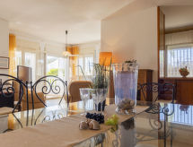 Urb Arenal 1 km van L'Ampolla: Groot, moderne villa "Arenal". 20 m van zee, 20 m van het strand. Voor alleengebruik: terrein 300 m2. Patio, barbecue, parkeerplaats (voor 2 auto's) bij het huis. Winkel 1 km, levensmiddelenwinkel 1 km, supermarkt 3 km, restaurant 100 m, station 3 km. Jachthaven 1 km, jachthaven 1 km, golfterrein (18 holes) 8 km, surfschool 20 km. Attracties in de buurt: Port Aventura 65 km, Parque natural delta del Ebro 20 km.Interior
