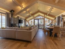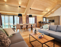 "Dachstein", chalet 6-kamers 150 m2. Licht, comfortabel en luxueus ingericht: woon-/eetkamer met zwedenkachel, eettafel, Sat-TV, Flatscreen TV en gaskachel. 4 2-pers. kamers, elke kamer heeft douche/WC. 1 2-pers. kamer. Open keuken (oven, afwasmachine, 4 keramische glas kookplaten, broodrooster, waterkoker, magnetron, elektrische koffiemachine). Bad/WC, douche/WC, aparte WC, hydromassage douche, Sauna. Balkon. Balkonmeubilair. Zeer mooi panoramazicht op de bergen. Ter beschikking: Internet (Internet (WiFi), gratis). Oplaadstation voor elektrische voertuigen. Let op: niet rokers woning. Bij het huurobject gaat het om een typenhuis / een typenappartement. Het Chalet Dachstein heeft een eigen verwarmd buitenzwembad.- Kenmerken van de accommodatie