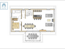 Haus im Ennstal: Moderne, comfortabel vakantiedorp "Hauser Kaibling by Alps Resorts". Boven Haus, zonnige ligging tegen een helling, direct aan de skigebied. In het huis: centrale verwarming. Parkeerplaats bij het huis. Supermarkt 1 km, restaurant 1 km. Ski faciliteiten, skiverhuur, kinderskischool 300 m. Bekende skigebieden kunnen gemakkelijk worden bereikt: Hauser Kaibling 300 m, Planai, Reiteralm. Wandelgebied Schladminger Thauern. Let op: Bij goede skicondities is het huis bereikbaar per ski. De afgebeelde foto is slechts een voorbeeld. De woningen kunnen onderling van inrichting verschillen. De huurobjecten kunnen wb. Woonoppervlak, kamerindeling verschillen.Interior