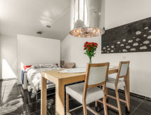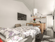 "De Orangerie", huis 1-kamer 32 m2. Comfortabel ingericht: open woon-/slaapkamer met 1 2-pers divanbed, Sat-TV en stereo-installatie. Uitgang naar het terras. Open keuken (4-pits kookplaat, waterkoker, elektrische koffiemachine, pads voor de koffiemachine (Cups) extra, combimagnetron) met eettafel. Douche/WC. Elektrische open haard. Terrasmeubelen. Uitzicht op het landschap. Ter beschikking: Internet (Internet (WiFi), gratis). Let op: 1 huisdier/hond toegestaan. Rookmelders.- Uitrusting