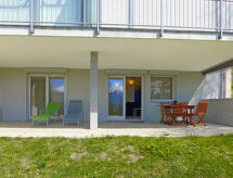 Appartement 2-kamers 54 m2, op de begane grond. Comfortabel en mooi ingericht: woon-/eetkamer met Kabel-TV, DVD en elektrische rolluiken. Uitgang naar de tuin, naar het terras, op het zuiden. 1 kamer met 1 2-pers bed (160 cm, lengte 200 cm). Open keuken (oven, 4 keramische glas kookplaten, broodrooster, waterkoker, magnetron, diepvriezer, elektrische koffiemachine, pads voor de koffiemachine (NESPRESSO) extra, raclette oven, fondue Set (chinese, kaas)). Douche/WC. Parketvloeren. Groot terras. Terrasmeubelen, ligstoelen (2). Mooi uitzicht op de bergen en de tuin. Ter beschikking: wasmachine, haardroger. Internet (Internet (WiFi), gratis). Let op: niet rokers woning.- Uitrusting