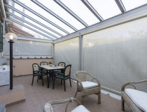 "Diana", appartement 1-kamer 40 m2, op de begane grond. Gezellig ingericht: woon-/eetkamer met 1 2-pers bed (160 cm, lengte 200 cm), TV. Uitgang naar het terras. Kookhoek (afwasmachine, 4 kookpitten (vlammen), broodrooster, waterkoker, magnetron). Uitgang naar het terras. Douche/bidet/WC. Air-conditioning, heteluchtverwarming. Verwarming alleen beschikbaar van 15.10. tot 30.04. Groot terras 20 m2. Terrasmeubelen. Ter beschikking: wasmachine. Internet (Internet (WiFi), gratis). Parkeerplaats bij het huis. 1 huisdier/hond toegestaan. CITRA:008026-LT-0055- Uitrusting