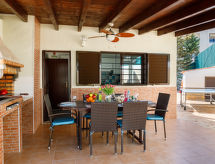 5-kamer huis (vrijstaand) voor 10 personen, 300 m2 op 2 verdiepingen, eenvoudig en gezellig ingericht. Woon-/slaapkamer met Kabel-TV en eettafel. Roken niet toegelaten. Internet (WIFI). 2 divanbedden. Slaapkamer met 1 dubbel bed. Slaapkamer met 2 eenpersoons bedden. Slaapkamer met 2 eenpersoons bedden. Slaapkamer met 2 eenpersoons bedden. Keuken met 4 kookplaten, magnetron, oven, afwasmachine, koelkast en diepvriezer. Bad/WC, douche, douche/WC en bad/douche/WC. Balkon, terras, zithoek in de tuin, terrasmeubelen. Overige voorzieningen: kinderstoel, haardroger, strijkijzer, wasmachine. 125141/AL- Kenmerken van de accommodatie