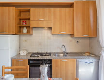 Huis 3-kamers 70 m2, op de begane grond. Eenvoudig en doelmatig ingericht: woon-/eetkamer met veranda met TV. Uitgang naar de tuin, naar de veranda. 1 2-pers. kamer. 1 kamer met 2 bedden. Kookhoek (4-pits kookplaat, oven, afwasmachine, diepvriezer). Douche/bidet/WC. Gas-verwarming. Kleine tuin. Terrasmeubelen, barbecue (verrijdbaar). Uitzicht in de verte op de bergen. Ter beschikking: wasmachine. Internet (Internet (WiFi), gratis). Parkeerplaats (omheind, 1 Auto). Let op: geschikt voor families. Parkeerplaats alleen voor een kleine auto. 1 huisdier/hond toegestaan.- Uitrusting