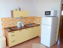 Appartement 3-kamers 60 m2 op de 2e verdieping. Woon-/eetkamer met 1 2-pers divanbed, Sat-TV en air-conditioning. 1 kamer met 1 2-pers bed. 1 kamer met 2 bedden. Open keuken (2-pits kookplaat, broodrooster, waterkoker, magnetron, diepvriezer, elektrische koffiemachine). Douche/WC. Heteluchtverwarming. Balkon 17 m2. Balkonmeubilair. Uitzicht op zee. Ter beschikking: wasmachine. Internet (Internet (WiFi), gratis). Let op: rookvrij huis.- Uitrusting
