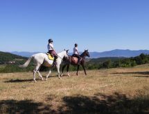 "Il Monte", 3-kamers cottage 75 m2, op de begane grond. Rustiek ingericht: woon-/eetkamer met 1 2-pers divanbed, open haard en kookhoek. Uitgang naar de tuin. 1 2-pers. kamer met douche/WC. 1 kamer met 2 bedden. Kookhoek (oven, afwasmachine, 5 kookpitten (vlammen), broodrooster, diepvriezer). Bad/WC. Gas-verwarming. Zithoek in de tuin, tuin. Terrasmeubelen, barbecue. Let op: rookvrij huis. Maximaal 2 huisdieren/honden toegestaan. Privé ingang.- Kenmerken van de accommodatie