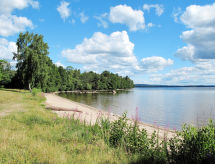 "Kjuge Gula Huset (SKO039)", huis 3-kamers 77 m2. Comfortabel ingericht: woonkamer met zwedenkachel en Sat-TV. Uitgang naar de veranda. 1 kamer met 1 2-pers bed. 1 kamer met 1 x 2 stapelbedden. Woonkamer met eettafel. Uitgang naar de veranda. Keuken (3-pits kookplaat, oven, broodrooster, waterkoker, magnetron, diepvriezer, elektrische koffiemachine). Uitgang naar de veranda. Douche/WC. Elektrische verwarming, vloerverwarming. Terras 30 m2. Terrasmeubelen. Uitzicht op het meer. Ter beschikking: wasmachine. Let op: rookvrij huis. Rookmelders, brandblusser.- Uitrusting