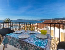 Huis in een rij 3-kamers 50 m2 op 2 verdiepingen. Licht, volledig gerenoveerd in 2020, comfortabel en mooi ingericht: Bovenverdieping: 1 kamer met 1 2-pers bed (1 x 160 cm, lengte 200 cm), air-conditioning. Douche, aparte WC. 2e Verdieping: woon-/eetkamer met TV en air-conditioning. Uitgang naar het terras. 1 kleine kamer met 1 uitschuifbaar bed (2 x 80 cm, lengte 190 cm), air-conditioning. Open keuken (oven, afwasmachine, 2 inductiekookplaten, broodrooster, waterkoker, magnetron, diepvriezer, elektrische koffiemachine, pads voor de koffiemachine (Nespresso) extra). Terras 5 m2. Terrasmeubelen. Zeer mooi uitzicht op zee en de haven. Ter beschikking: wasmachine. Internet (Internet (WiFi), gratis). Garage, hoogte 270 cm, breedte 350 cm. Let op: TV alleen FR. Rookmelders. 83112000646Z5- Uitrusting