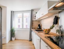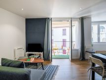 Residentie "Le Berri". In het centrum van Biarritz, centrale, drukke ligging, 600 m van zee, 600 m van het strand. Winkel 100 m, levensmiddelenwinkel 200 m, supermarkt 3 km, bakkerij 100 m, café 50 m, bushalte "Jardin Public" 100 m, station "Biarritz" 2.6 km, zandstrand "La Grande Plage", overdekt zwembad 600 m, thermaalbad "Thalmar" 2 km. Golfterrein (18 holes) 1.7 km, surfschool 600 m, tennishal 2.3 km, manege 3.4 km. Attracties in de buurt: Marché des Halles 500 m, Aquarium Biarritz 1.1 km, Phare de Biarritz 1.9 km, Cité de l'Océan 2.6 km, Bayonne 8.5 km, Saint-Jean-de-Luz 17 km. Wandelgebied La Rhune 28 km. Let op: geen lift. De sleuteloverdracht vindt plaats bij het agentschap Interhome. Hoofdstraat in de buurt. Vliegveld 2.4 km van het huis.Interior