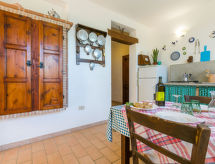"Libeccio", appartement 3-kamers 50 m2, op de begane grond. Mooi en smaakvol ingericht: woon-/eetkamer. 1 2-pers. kamer. 1 kamer met 1 divanbed (140 cm, lengte 190 cm). Open keuken (Gasfornuis, 4 kookpitten (vlammen), broodrooster, waterkoker, elektrische koffiemachine) met eettafel. Douche/bidet/WC. Gas-verwarming (extra). Ruime zithoek in de tuin 20 m2, gedeeltelijk overdekt. Terrasmeubelen, ligstoelen (2). Mooi uitzicht op het landschap. Ter beschikking: wasmachine, strijkijzer, klamboe, kinderstoel, kinderbed tot 2 jaar, haardroger. Internet (Internet (WiFi), gratis). Let op: 2 huisdieren/honden toegestaan. Privé ingang.- Uitrusting