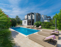 Moderne twee onder één kap woning van 2 verdiepingen. 2 km van het centrum van Medulin, 800 m van het centrum van Ližnjan, 10 km van het centrum van Pula, 1.4 km van zee, 1.4 km van het strand. Voor medegebruik: kinderspeelplaats (glijbaan, schommel). Voor alleengebruik: terrein 700 m2 met gazon, openluchtzwembad (8 x 3 m, 150 cm diepte, seizoensgebonden beschikbaarheid: 01.Mei. - 01.Okt.) met trap. Buitendouche, tafeltennis, terras, tuinmeubelen. In het huis: internetaansluiting, alarmsysteem, wasmachine. Toegangsweg tot aan het huis (250 m onverharde weg). Parkeerplaats bij het huis. Winkel 400 m, kiezelstrand 1.4 km, rotsstrand 1.4 km. De eigenaar accepteert geen jeugdgroepen.Interior