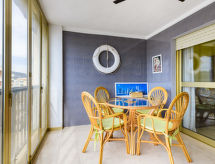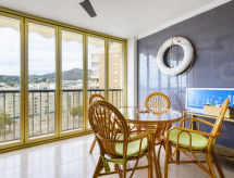 "Neptuno - La Concha", appartement 2-kamers 50 m2 op de 8e verdieping. Het objekt is geschikt voor 2 volwassenen + 2 kinderen. Doelmatig en comfortabel ingericht: woon-/eetkamer met 1 divanbed (120 cm, lengte 180 cm), eettafel, Digitale TV, Flatscreen TV, air-conditioning en heteluchtverwarming. Uitgang naar het terras. 1 kamer met 1 2-pers bed (150 cm, lengte 190 cm), ventilator. Keuken (oven, 4 keramische glas kookplaten, broodrooster, magnetron, diepvriezer, elektrische koffiemachine, pads voor de koffiemachine (Nespresso) extra). Bad/bidet/WC. Verwarming niet in alle ruimtes. Terras overdekt. Terrasmeubelen. Uitzicht op zee. Ter beschikking: wasmachine, strijkijzer, kinderstoel, kinderbed, haardroger. Internet (Internet (WiFi), gratis). Let op: geschikt voor families. Niet rokers woning. VT-41593-CS- Uitrusting